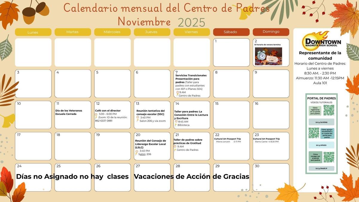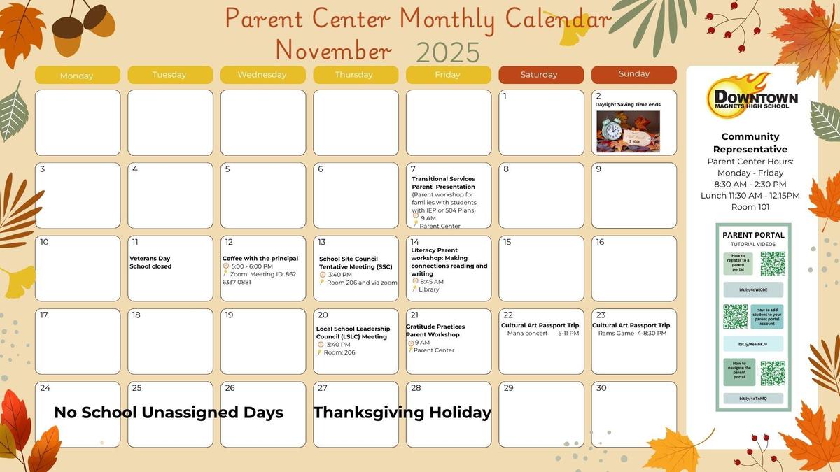 Parent Center Monthly Calendar November 2025