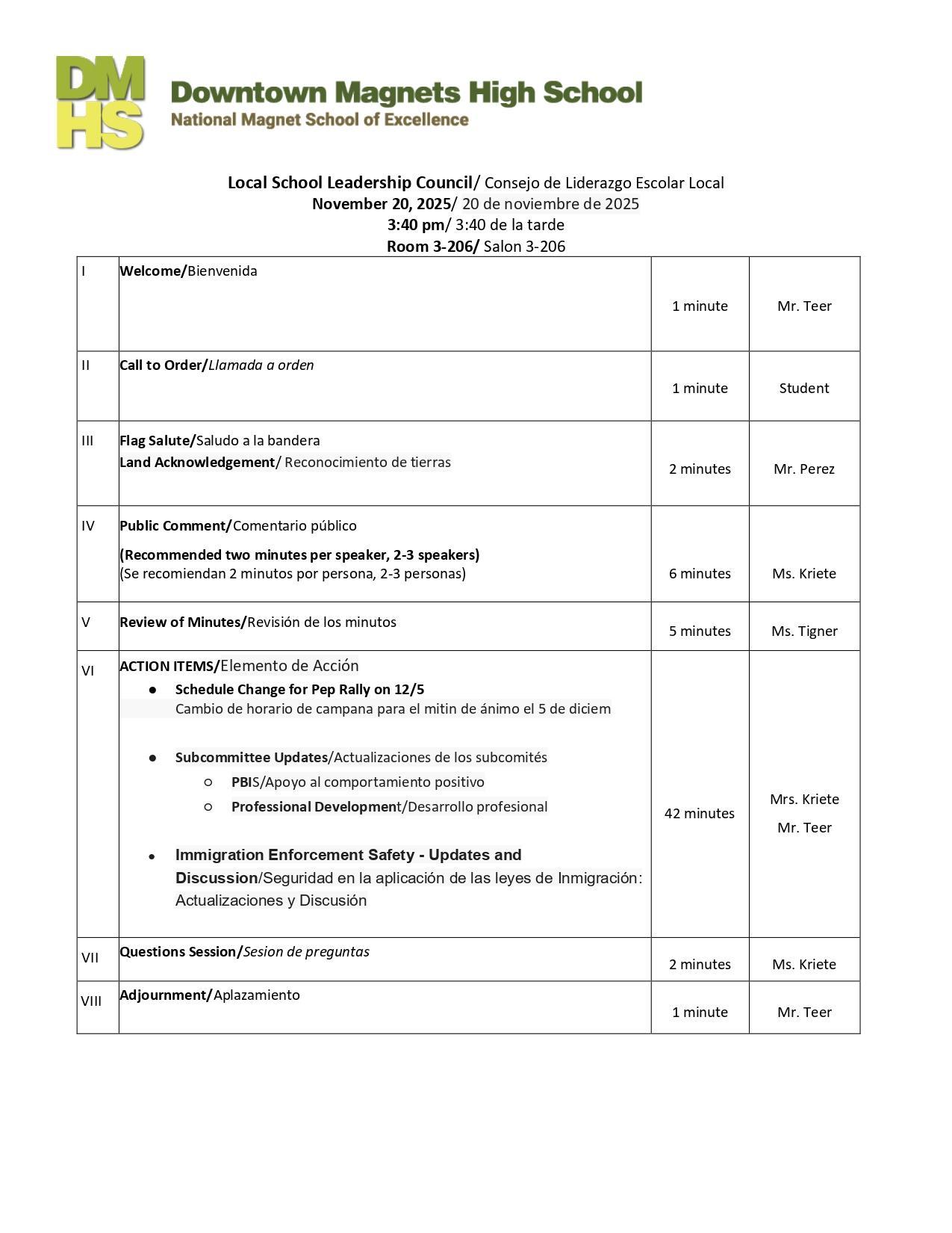 Local School Leadership Council/ Consejo de Liderazgo Escolar Local Published November 13, 2025 Print