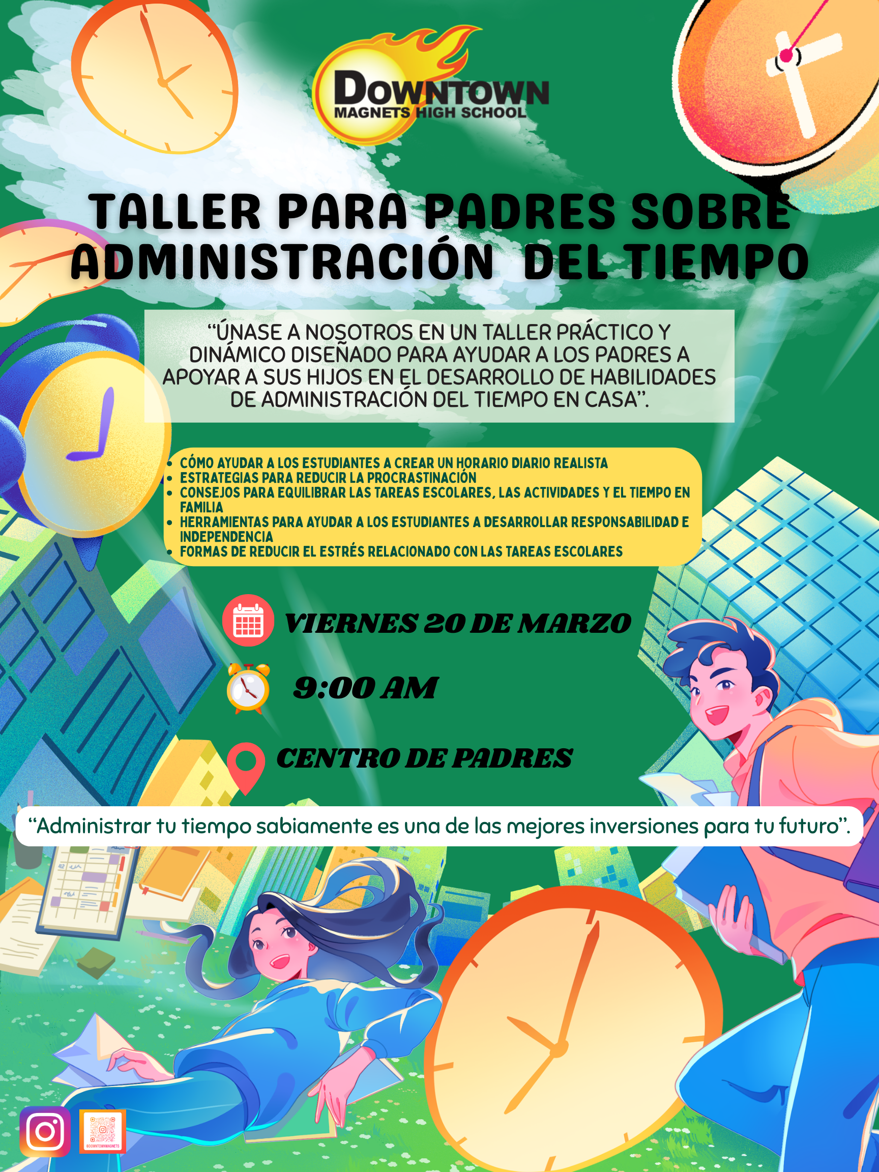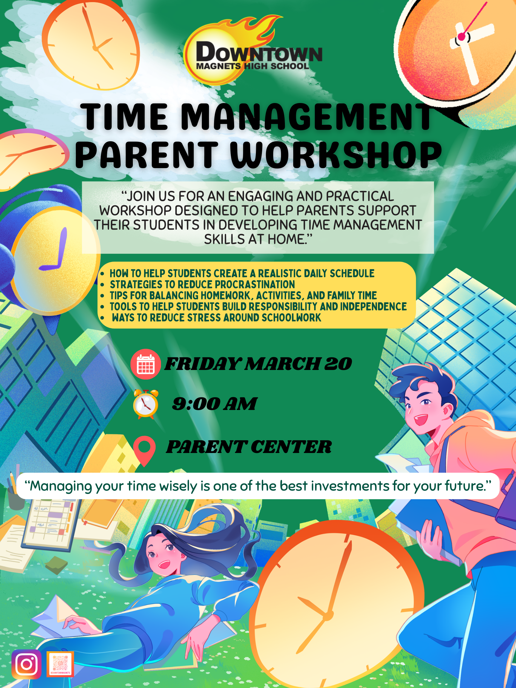"JOIN US FOR AN ENGAGING AND PRACTICAL WORKSHOP DESIGNED TO HELP PARENTS SUPPORT THEIR STUDENTS IN DEVELOPING TIME MANAGEMENT
